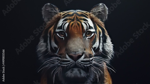 © Ahmad, Fototapeta premium Close-up portrait of a tiger against a dark background.