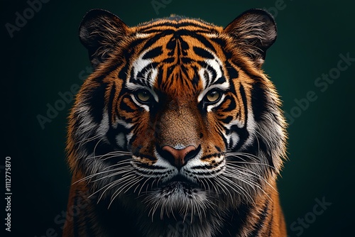© Liza, Naklejka premium Close-up portrait of a tiger against a dark green background