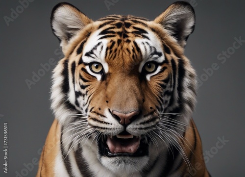 © Maule, Fototapeta premium Close-up portrait of a tiger. Isolated on gray background.