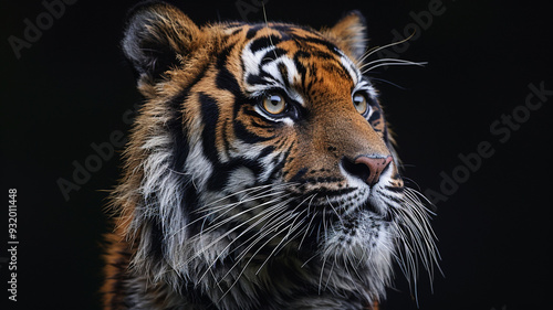 © Anatoli, Obraz premium Close-up portrait of a tiger on a dark background