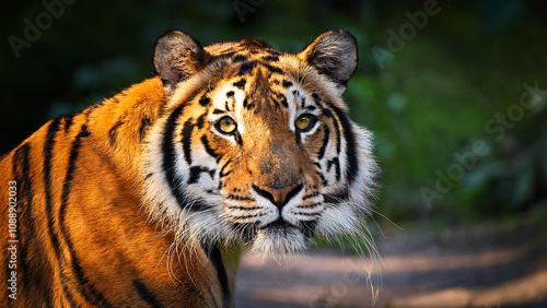 Fototapeta premium Close-up portrait of a tiger outdoors.