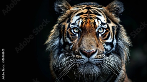 © Arieswanto, Fototapeta premium Close-up Portrait of a Tiger with Intense Eyes