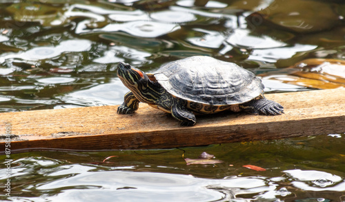 Fototapeta premium Close-up portrait of a turtle in a pond