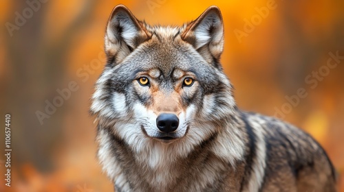 © Galib, Fototapeta premium Close up portrait of a wolf looking intently at the camera.