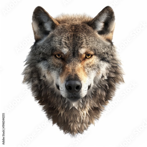© sennauli, Fototapeta premium Close-up portrait of a wolf's head with intense golden eyes.