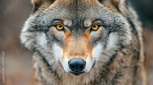 Fototapeta premium Close-up Portrait of a Wolf with Intense Golden Eyes