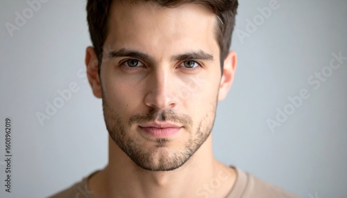 © Hardi, Fototapeta premium Close-up portrait of a young man with dark hair and a serious expression