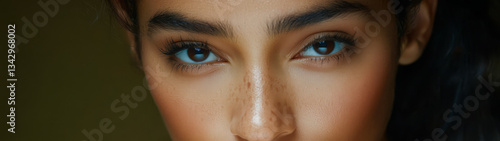 © JuanM, Fototapeta premium Close-up portrait of a young woman with striking features and captivating eyes