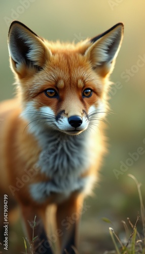 Fototapeta premium Close-up portrait of an alert red fox, captured in a natural habitat with...