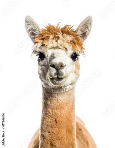 © Fiz, Obraz premium Close-up portrait of an alpaca against a white background