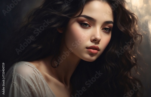 Fototapeta premium Close up portrait of an attractive young woman with Flowers, Beautiful Model...