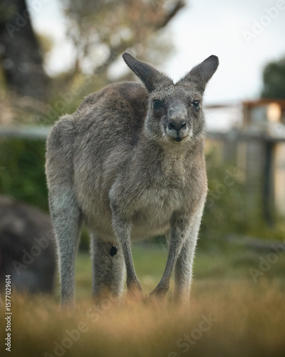 © Érik Glez., Fototapeta premium close-up portrait of an eastern grey kangaroo in its natural forest environment in australia. captured in golden light, showing detail and expression.