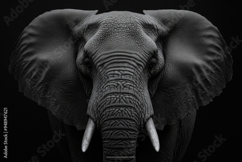© NikahGeh, Fototapeta premium Close-up Portrait of an Elephant's Face in Black and White