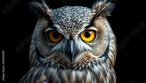 Fototapeta premium Close-up Portrait of an Owl with Bright Yellow Eyes