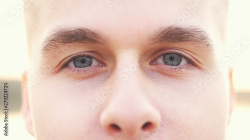 © emaria, Fototapeta premium Close-up portrait of attractive caucasian man with grey eyes