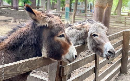 © Viktoriia, Fototapeta premium Close-up portrait of beautiful donkeys on a clear day