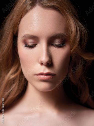 Fototapeta premium Close-up portrait of beautiful young girl with closed eyes