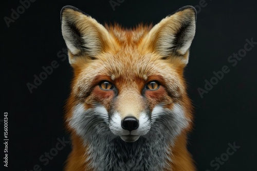 © nsit0108, Fototapeta premium Close up portrait of captivating red fox emanating intelligence and alertness against a stark black backdrop