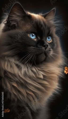 © QuietWord, Fototapeta premium close up portrait of cute black fluffy cat with light glow, Generative Ai