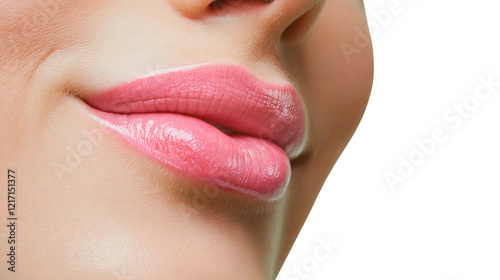 Obraz premium Close-Up Portrait of Feminine Beauty with Glossy Pink Lips and Natural Makeup