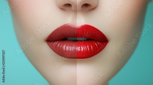 © Keattipoom, Fototapeta premium Close-up Portrait of Glossy Lips with Color Transition and Textured Skin