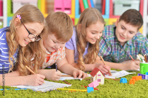 Fototapeta premium Close up portrait of group of children drawing with pencils
