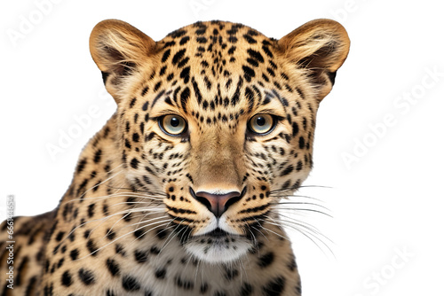 Fototapeta premium Close-up portrait of leopard white background