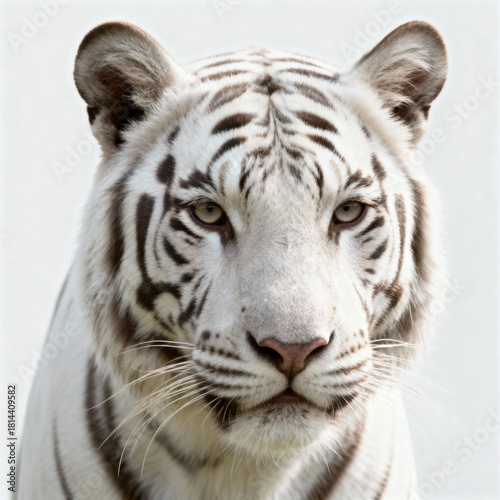 © Varun, Fototapeta premium Close up portrait of majestic white tiger face isolated on white background