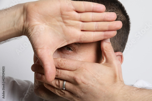Fototapeta premium Close-up portrait of man playing with his hands. Mental issues. Psychology.
