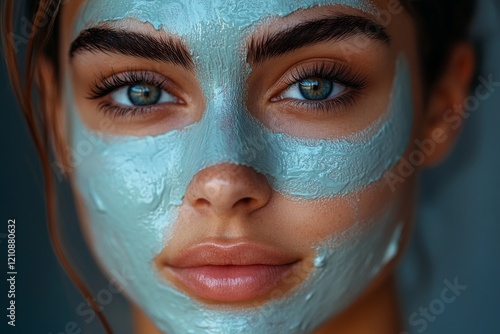 Fototapeta premium "Close-Up Portrait of Person Applying Hydrating Face Mask During Skincare...