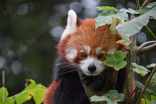 © breakingthewalls, Fototapeta premium Close up portrait of red panda on tree
