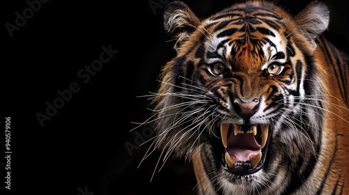© Bushra, Naklejka premium Close-up portrait of tiger wearing crown. generative AI image