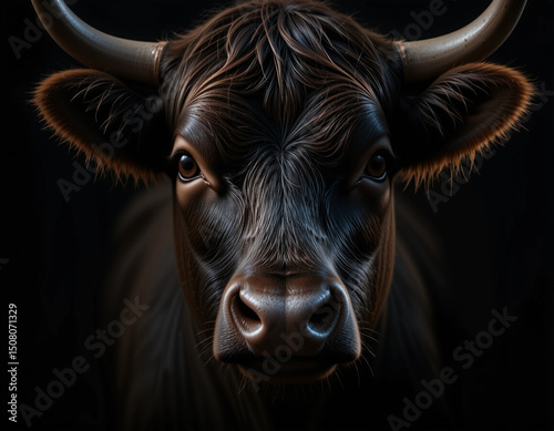 © Aboeyazied, Naklejka premium Close-Up Portrait of Wagyu Cow in Low Key Light