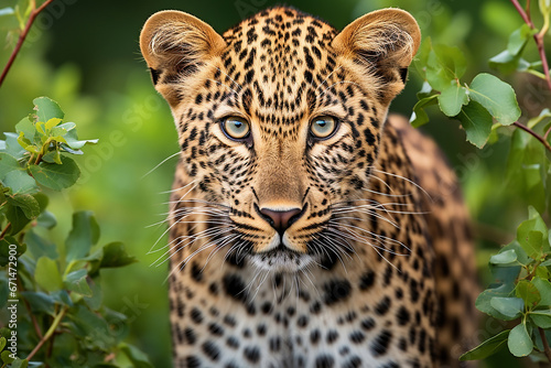 © Ksenia Belyaeva, Naklejka premium Close-up portrait of wild beautiful leopard in nature