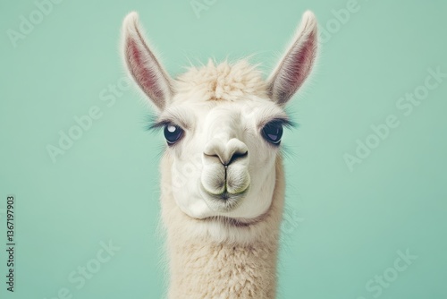 Obraz premium Close-up portrait photo of an adult cream-colored llama with long lashes,...