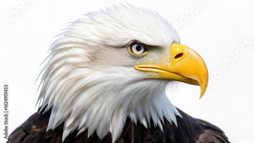 © Stock Medae , Fototapeta premium Close-up profile of a bald eagle against a white background