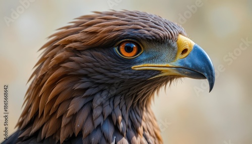 Fototapeta premium Close-Up Profile of a Majestic Eagle with Striking Brown Feathers and Intense...