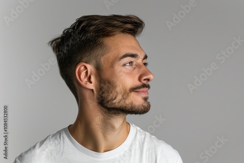 © darshika, Fototapeta premium Close up profile of calm neat man in casual attire.