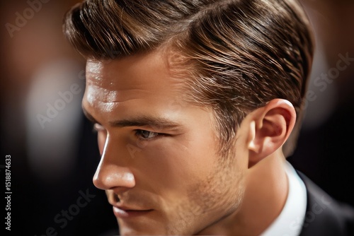 © Herlita, Fototapeta premium Close-up profile view of a man's face and hair.