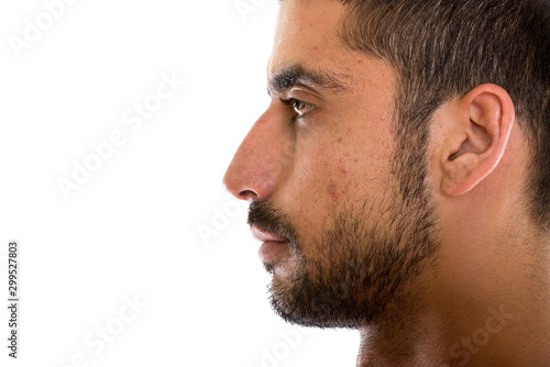 Obraz premium Close up profile view of young Persian man