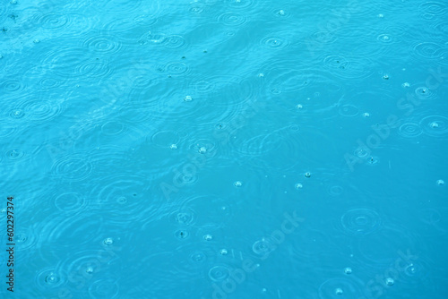 © 249 Anurak, Obraz premium Close up rain drops on water surface.