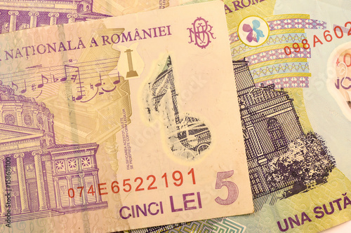 © hossein1351, Fototapeta premium Close up Romanian currency note, LEI or LEU, Romania