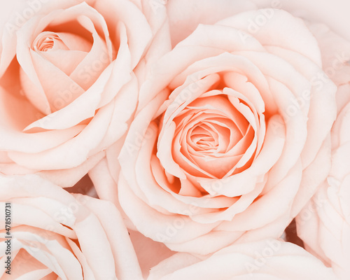 Obraz premium Close up rose flower, delicate macro petals peach cream pastel colors,...