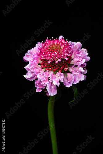 Obraz premium Close up scabiosa flower head on black