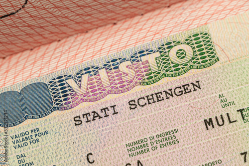 Fototapeta premium Close up Schengen visa in the passport. closed border of EC