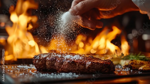 © Marco, Naklejka premium close-up seasoning meat cooking
