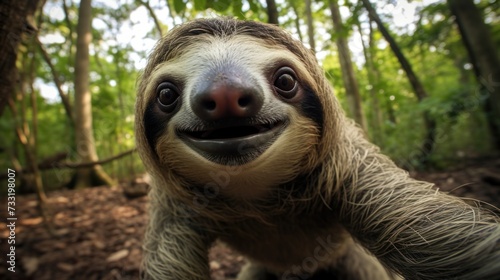 Naklejka premium Close-up selfie portrait of a sloth.