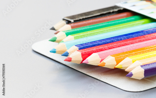 © nitimongkolchai, Naklejka premium close up set of crayons and mix color on table