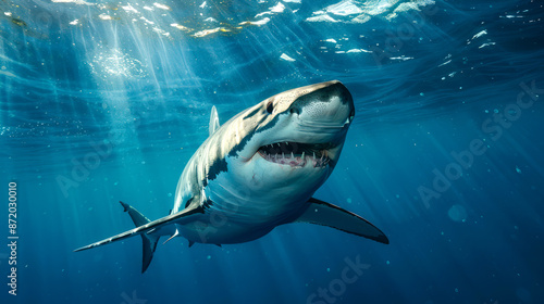 © dropideas, Fototapeta premium close up shark in deep sea on ocean