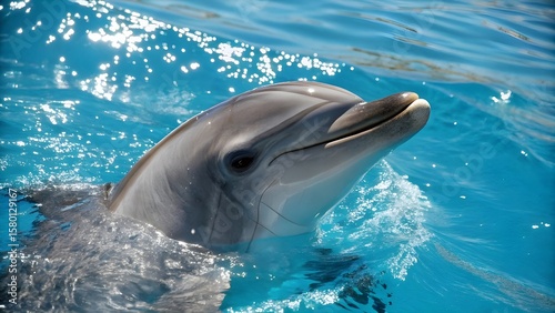 © Rony, Fototapeta premium Close-Up Shot of a Bottlenose Dolphin Surfacing in Crystal Blue Water